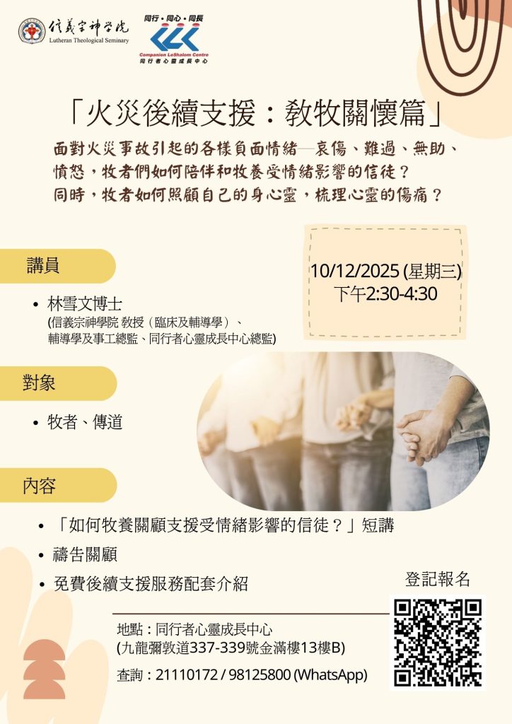 內容:「如何牧養關顧支援受情緒影響的信徒?」短講、禱告關顧、免費後續支援服務配套介紹