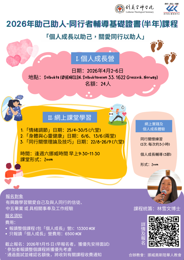 2026年 助己助人-同行者輔導基礎證書(半年)課程