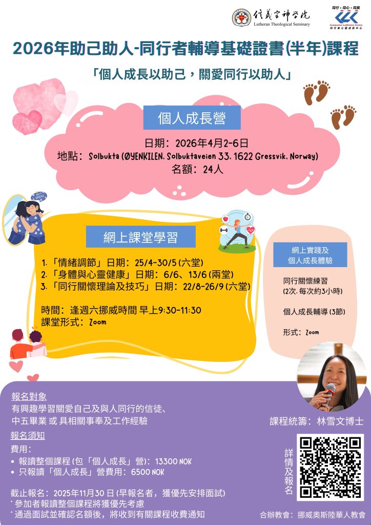 2026年 助己助人-同行者輔導基礎證書(半年)課程